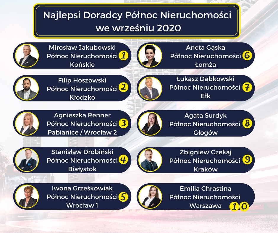 Najlepsi Doradcy Północ Nieruchomości we Wrześniu 2020