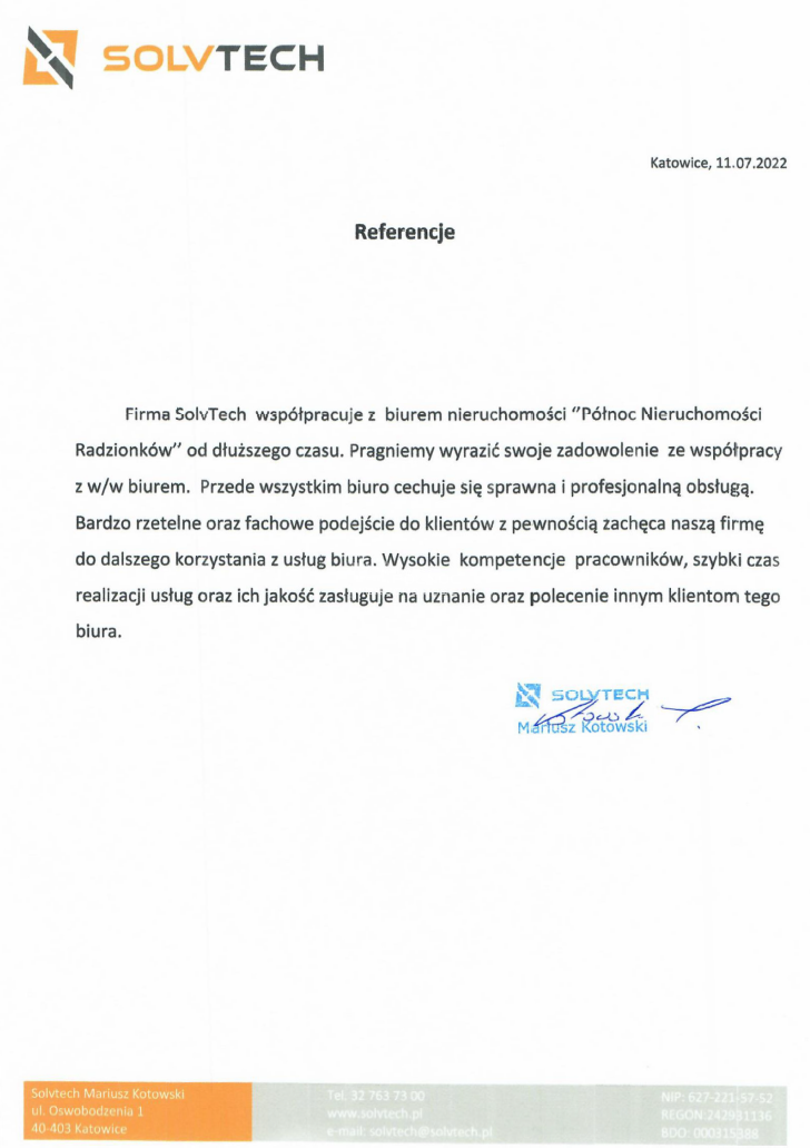 Sprzedaż i wynajem nieruchomości w Radzionkowie to nasza specjalność. Codziennie pomagamy dziesiątkom klientów w bezpiecznych transakcjach kupna, sprzedaży i wynajmu nieruchomości, bazując na naszej wiedzy i zdobytemu doświadczeniu. Oddział w Radzionkowie jest stworzony przez zespół, który codziennie poszerza swoje kompetencje. Nasi Agenci pomogą Ci podejmować najkorzystniejsze decyzje związane z nieruchomościami.
