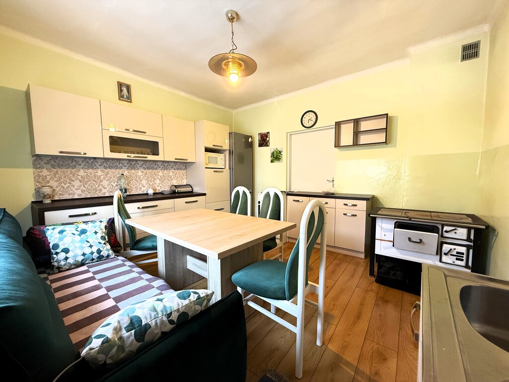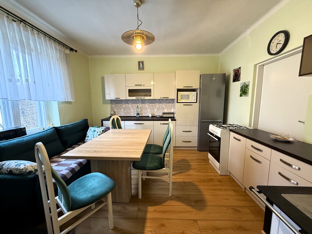 Dom jest w pełni umeblowany i wyposażony, gotowy do zamieszkania bez dodatkowych nakładów finansowych.