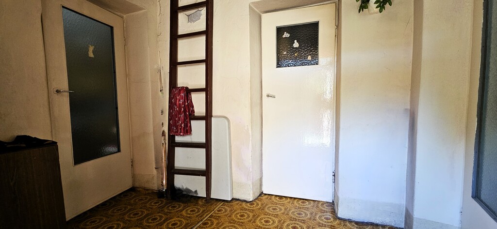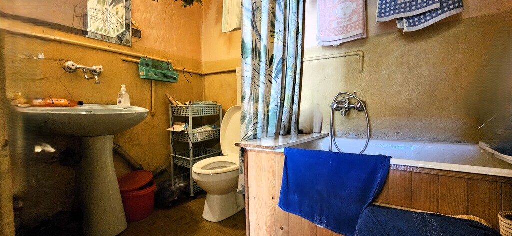 - budynek gospodarczy o pow. zabudowy ok. 100 m² – przylegający bezpośrednio do budynku mieszkalnego, wzniesiony z białego kamienia, dach kryty eternitem