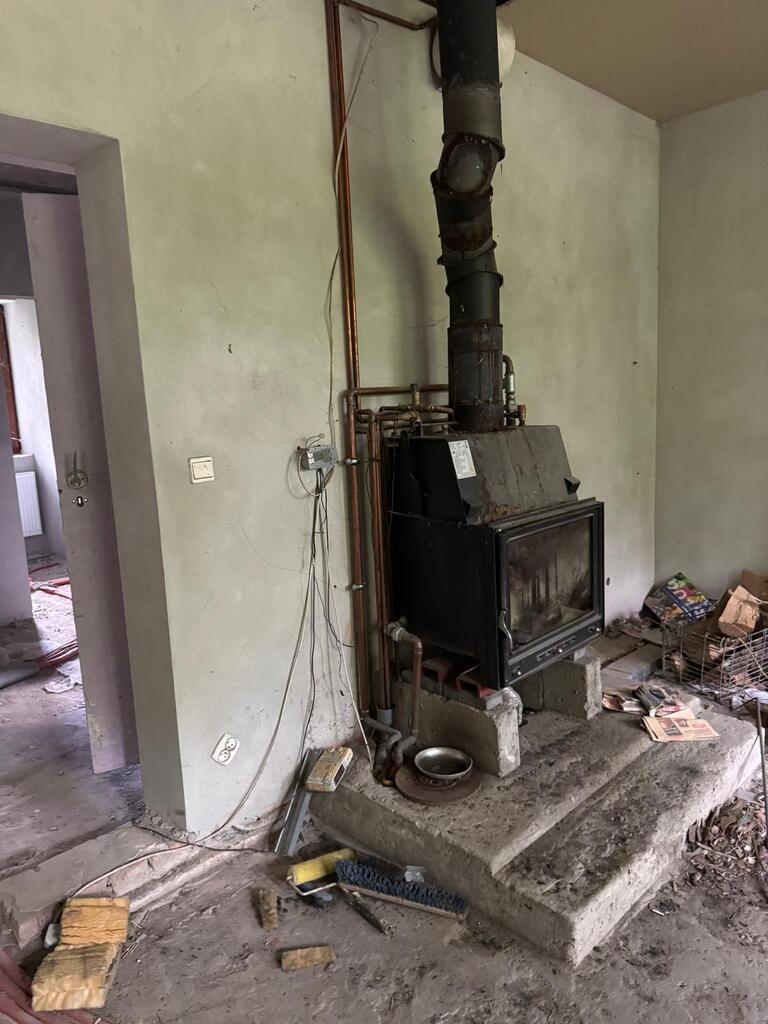 Dom posiada również zamontowany kominek.