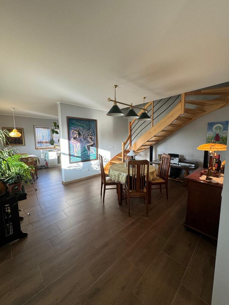 Dom posiada wszystkie instalacje elektryczne, hydrauliczne są nowe z certyfikatem odbioru elektrycznego. Powierzchnia całkowita wraz z garażem to 200 m2, użytkowa ( mieszkalna 160 m2 ).