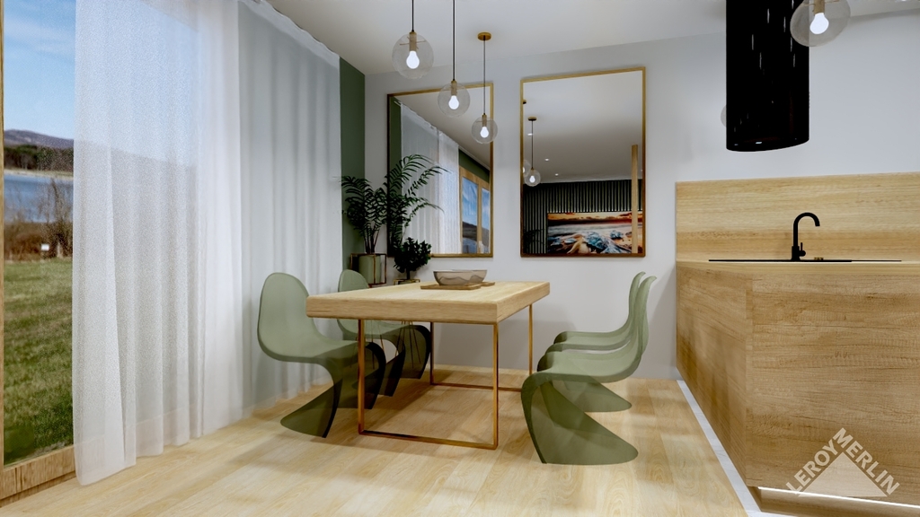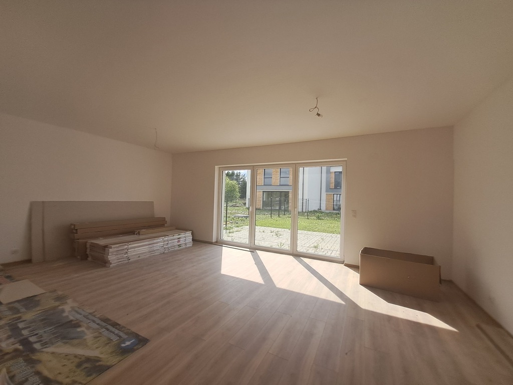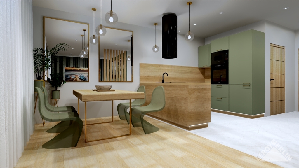 - przestronny salon z otwartą kuchnią i wyjściem na ogródek