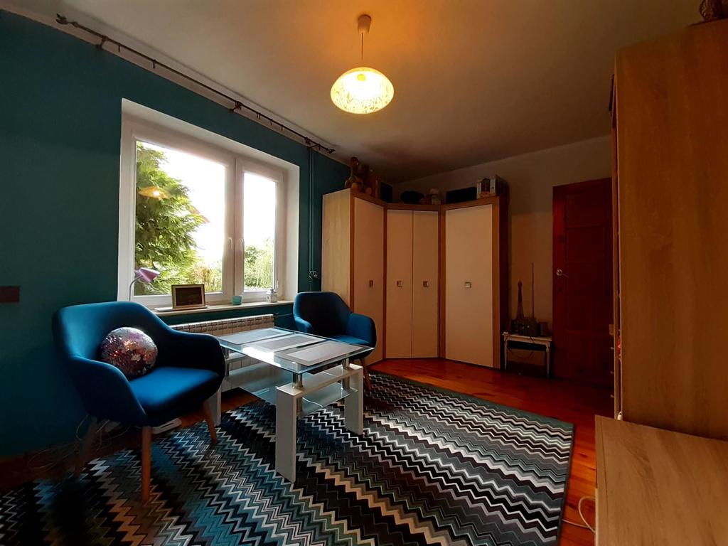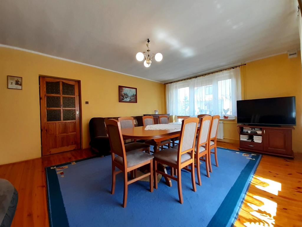 Dom o powierzchni użytkowej 120 m2, w bardzo cichej okolicy, całkowicie podpiwniczony, posiada sześć pokoi, kuchnię i łazienkę.