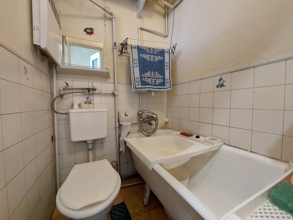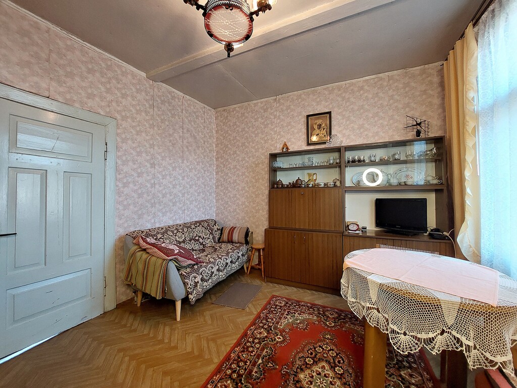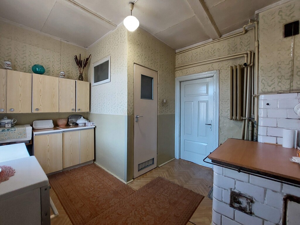 - trzy pokoje, kuchnię z tradycyjną płytą kaflową, łazienkę, sień i komórkę