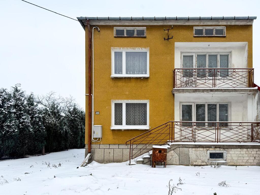 Solidny dom z lat 70., wybudowany z pustaka, na działce o wymiarach 109 m długości — co daje ogrom możliwości adaptacyjnych i zagospodarowania przestrzeni.