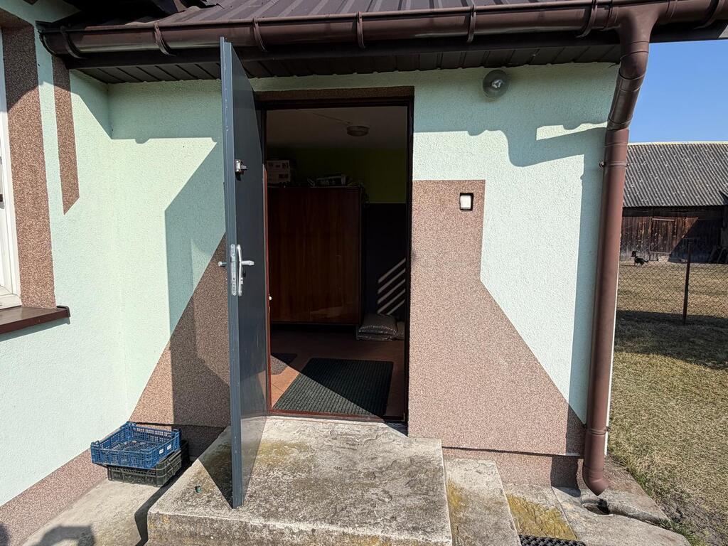 Dom ocieplony gotowy do wprowadzenia posiada : kuchnie z jadalnią , duży pokój , toaletę .