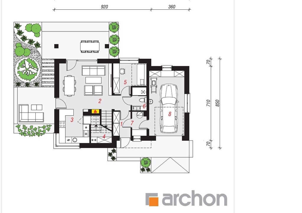 • Typ: dom wolnostojący z garażem w bryle budynku wybudowany z projektu "Dom w Malinówkach 2 (G) firmy Archon
