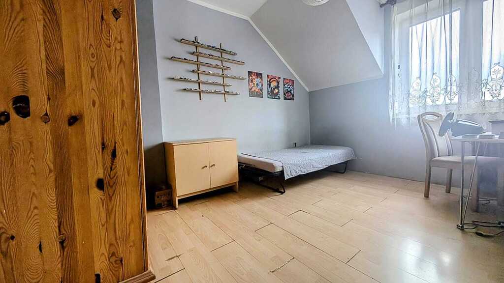 Ilość pomieszczeń: przestronny salon połączony z garderobą oraz wyjściem na taras, 3 sypialnie, 2 łazienki, duża kuchnia z jadalnią, dodatkowo strych do własnej aranżacji np. biuro, pokój gościnny lub siłownię