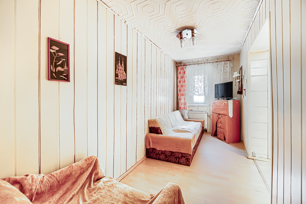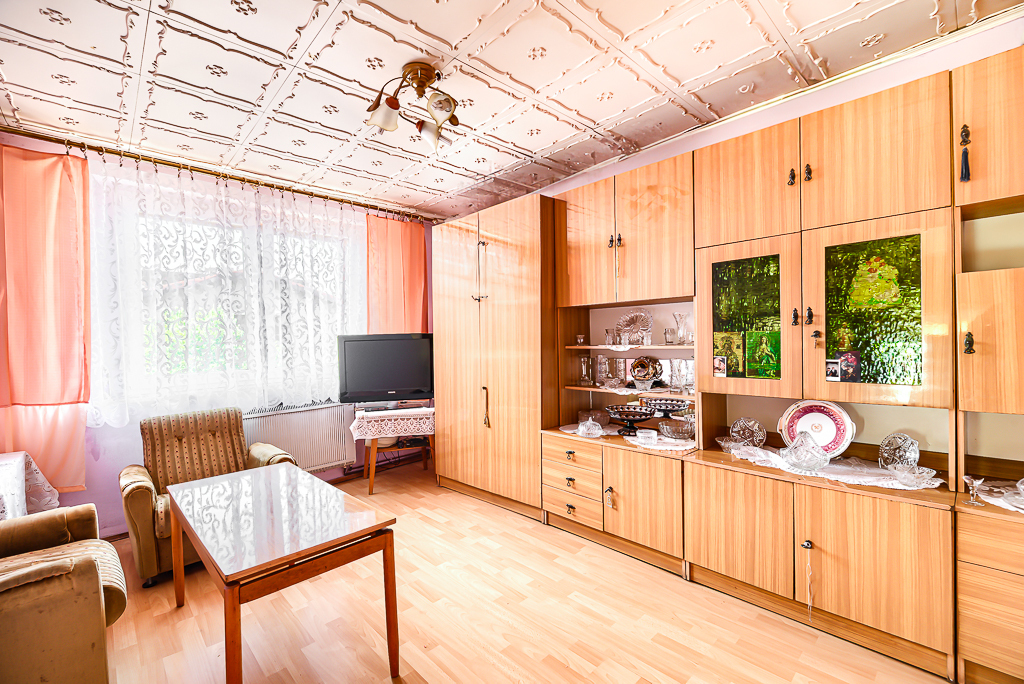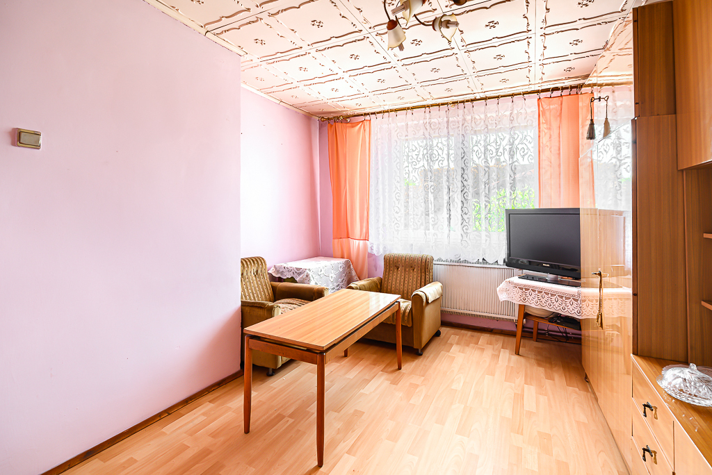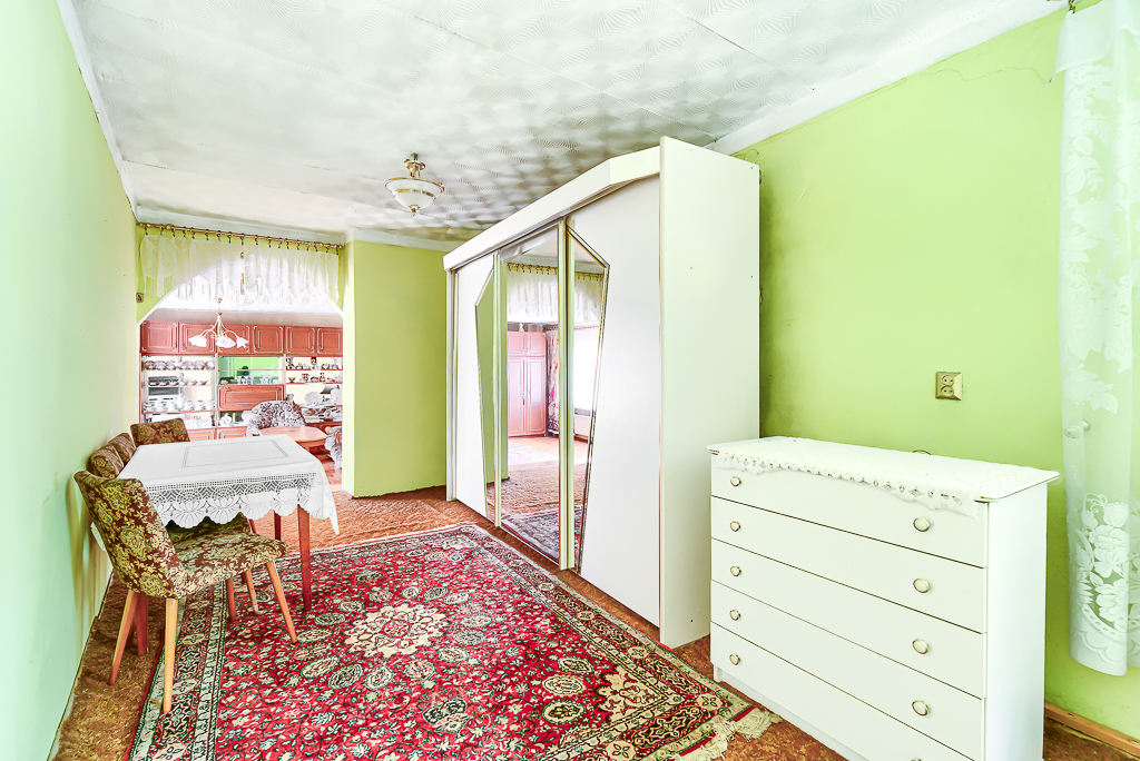 Dom w stanie do remontu i własnej aranżacji. W bryle budynku znajduje się praktyczny schowek na rzeczy ogrodowe. Na posesji, mimo niewielkiego metrażu, z łatwością zmieści się stół z krzesłami, tworząc przyjemne miejsce do odpoczynku w słoneczne dni. Dom daje wiele możliwości aranżacyjnych i stanowi ciekawą propozycję dla osób chcących stworzyć przestrzeń według własnych potrzeb.