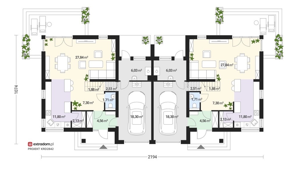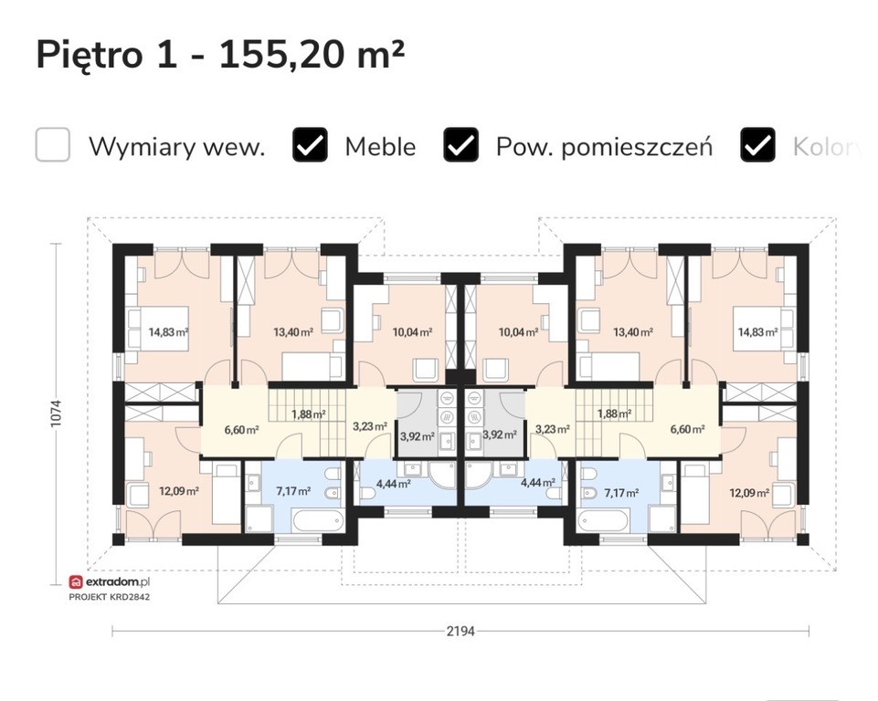 - 138 m² powierzchni jednego domu