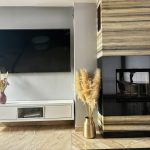 Kuchnia i meble w salonie wykonane przez stolarza na wymiar.