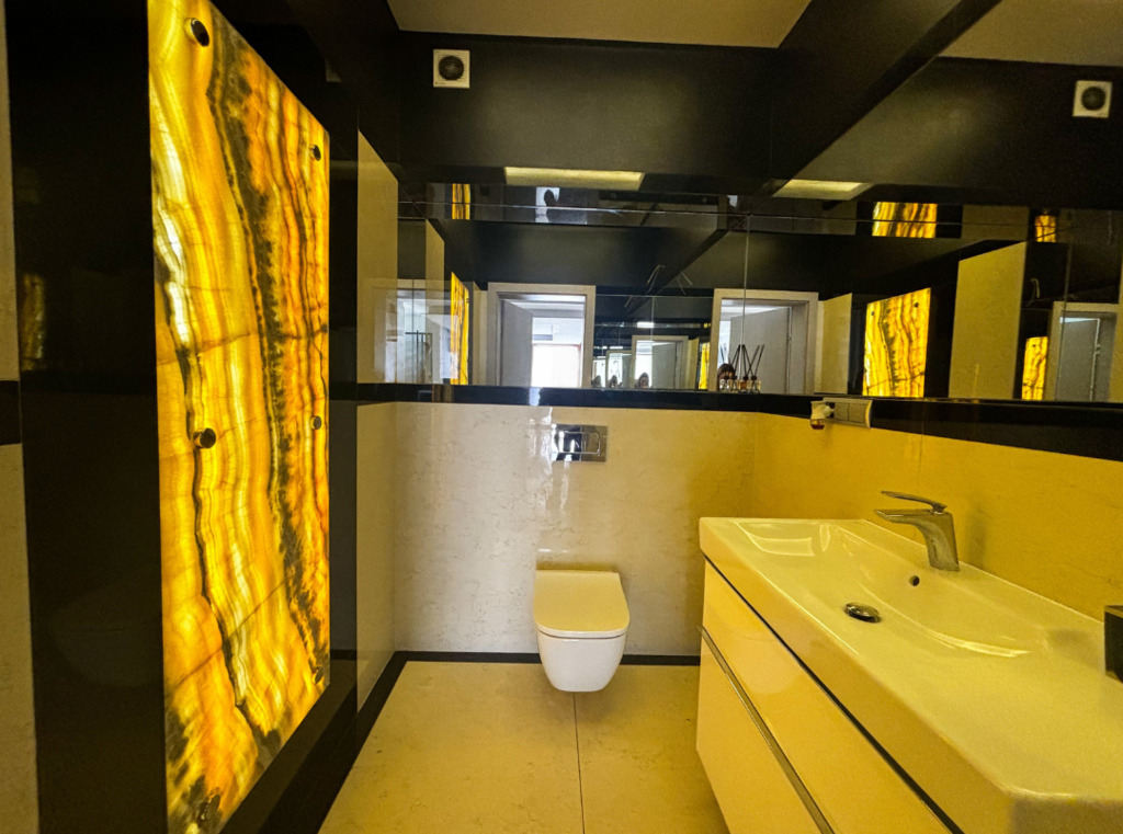 - Blaty w kuchni i łazience marmurowe
