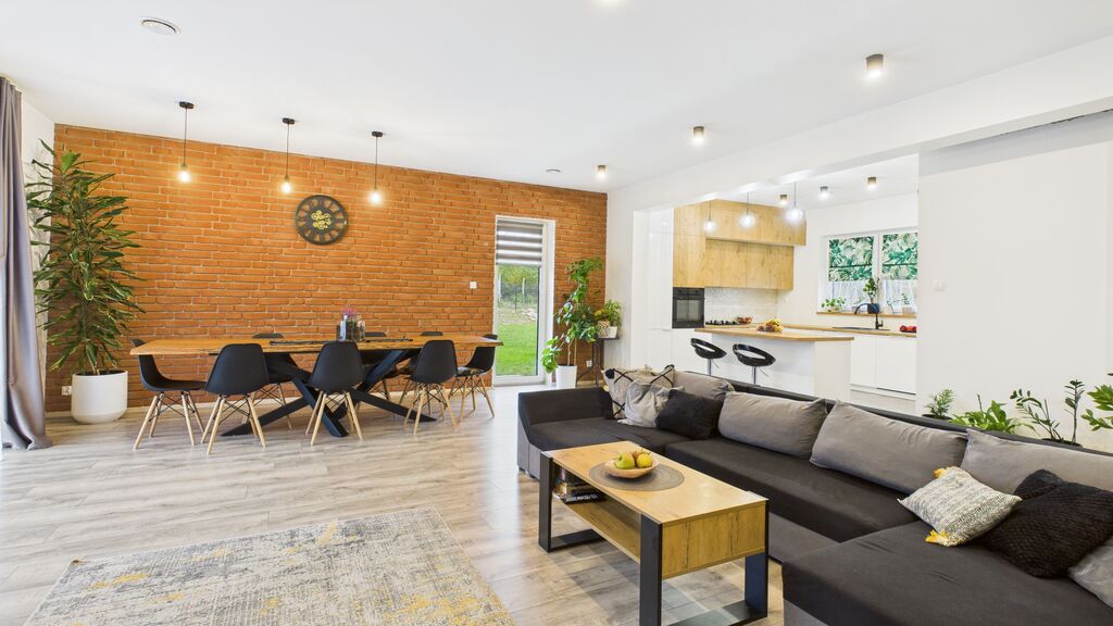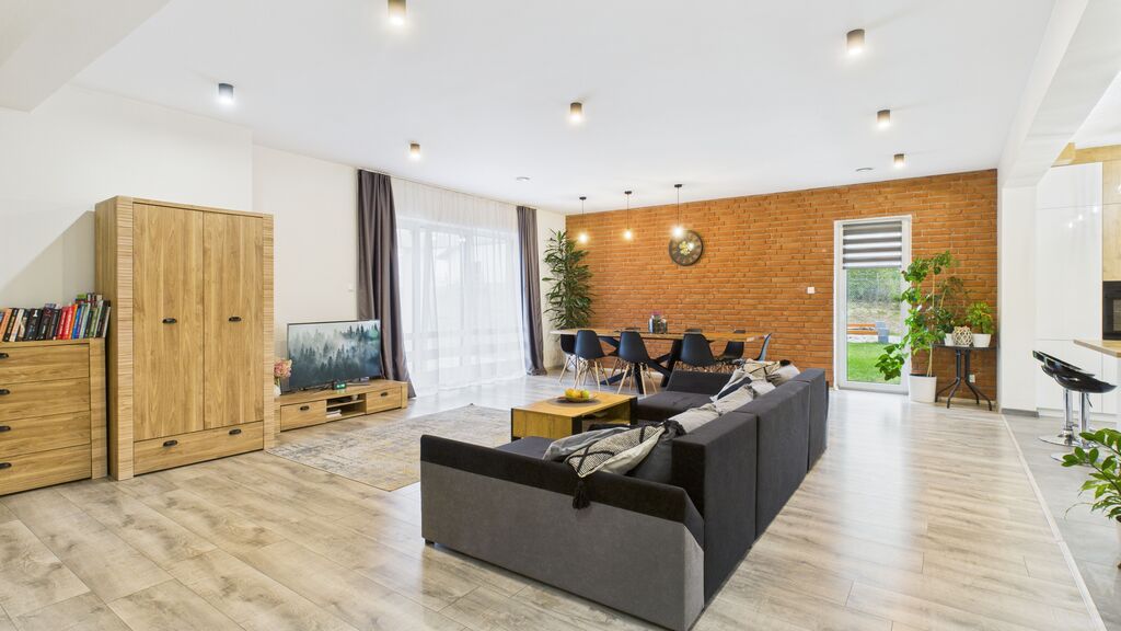 : - przestronny salon z jadalnią i wyjściem na taras i ogród