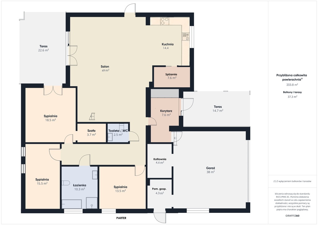 - 3 pokoje (w tym główna sypialnia z własną garderobą i wyjściem na taras)