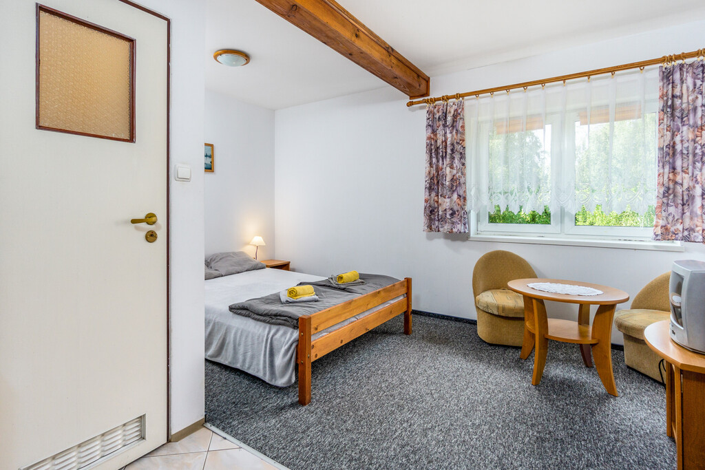 Dostępnych jest 31 miejsc noclegowych w pokojach. W każdym pokoju TV, w apartamentach lodówka.
