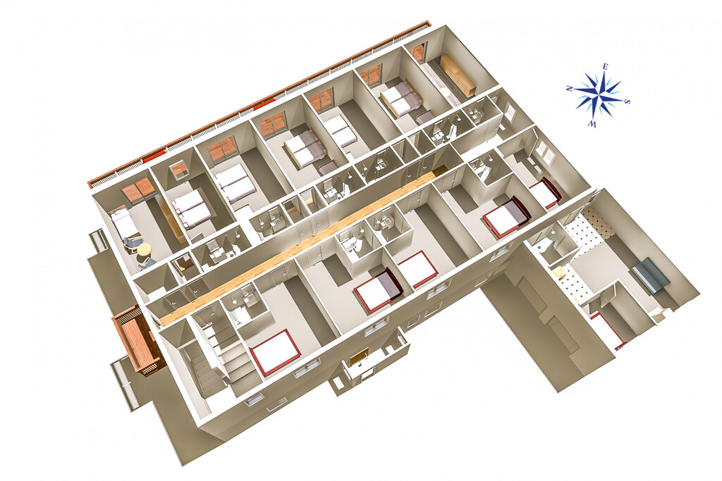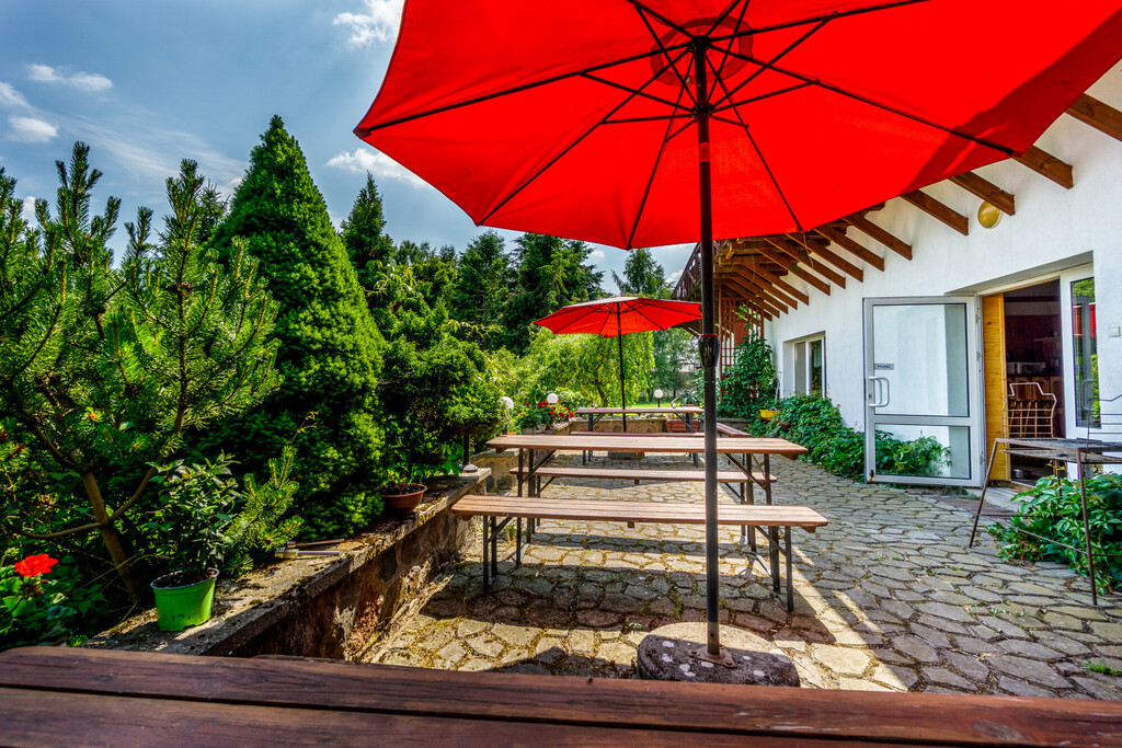 - pensjonat (10 pokoi gościnnych, sala jadalna z kominkiem i barkiem, zaplecze kuchenne, taras)