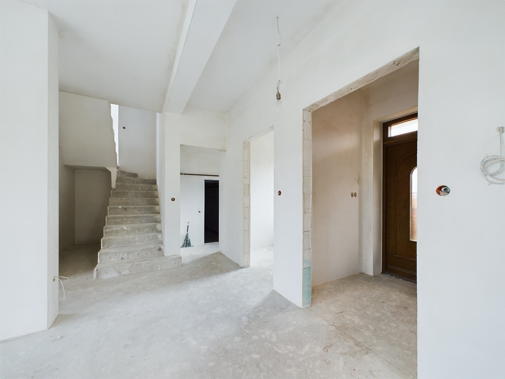 Prezentowany dom to nowoczesna konstrukcja o powierzchni 138 m2 (jedna połowa bliźniaka) w stanie surowym zamkniętym, co otwiera ogromne możliwości aranżacyjne, pozwalając na dostosowanie przestrzeni do potrzeb i gustów przyszłych mieszkańców.