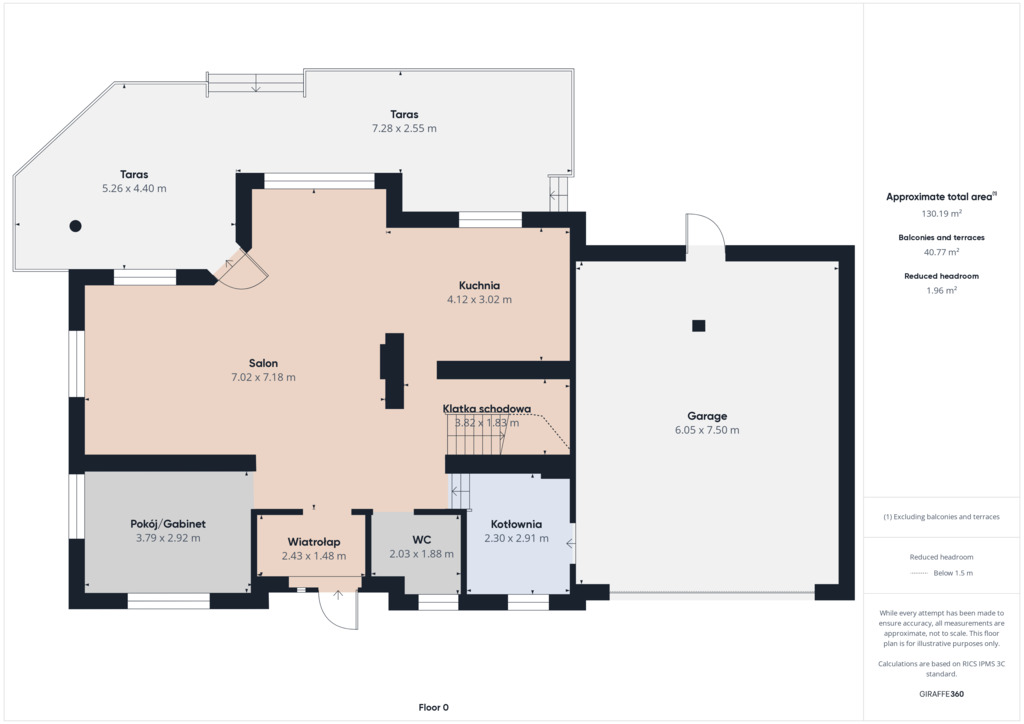 Parter o powierzchni użytkowej 126,1 m2 (126,9 m2 liczone po podłodze)