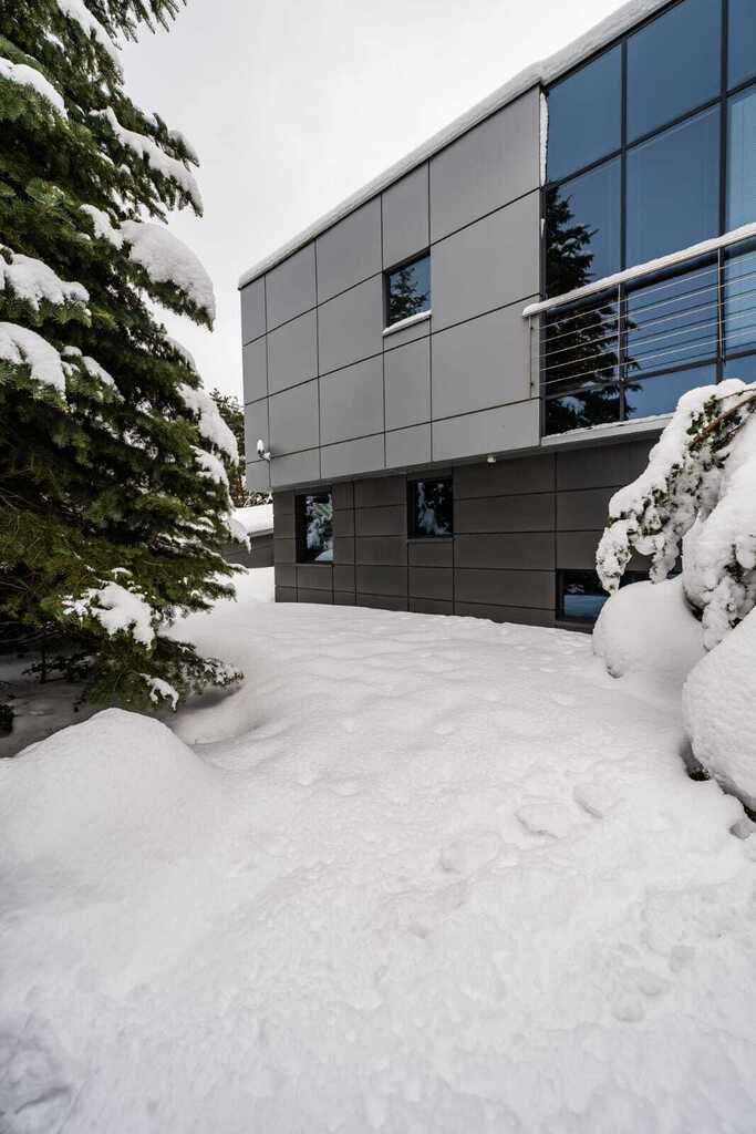 Dom usytuowany jest w najwyższym punkcie osiedla, otoczony z dwóch stron ścianą lasu, w sąsiedztwie zabudowy jednorodzinnej. Przestronna działka o powierzchni 2335 m² została pięknie zagospodarowana i obsadzona licznymi nasadzeniami, tworząc idealne miejsce do odpoczynku i życia w harmonii z naturą.