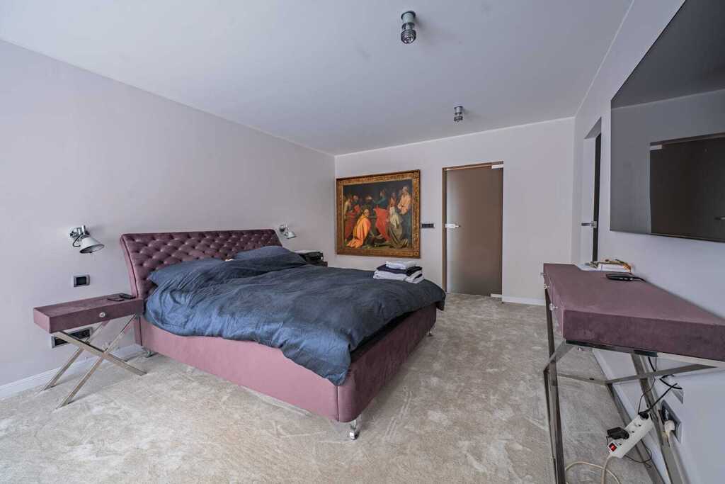 Wyjątkowym, architektonicznym wyróżnikiem nieruchomości jest również antresola z kameralną galerią obrazów, pełniąca funkcję strefy wypoczynkowej.