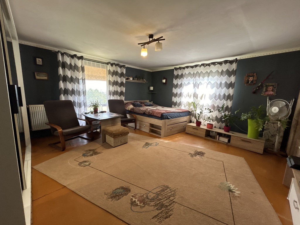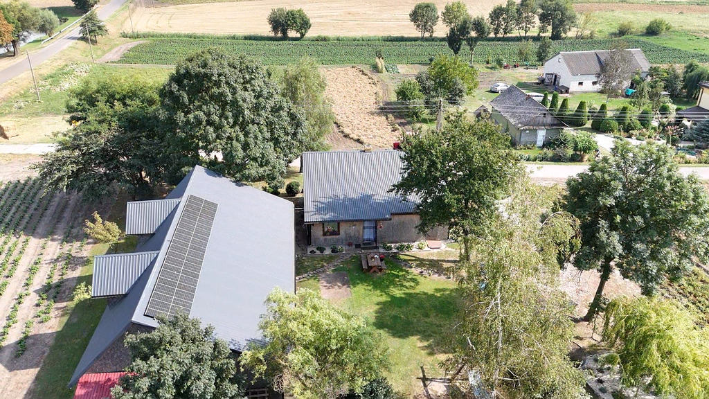 Na przestronnej działce o powierzchni 0,2355 (ha) znajduje się murowany budynek gospodarczy o wymiarach 16 x 9 metrów, idealny do prowadzenia działalności gospodarczej lub jako dodatkowa przestrzeń do przechowywania. Dach budynku, podobnie jak domu, został pokryty blachodachówką w 2018 roku.