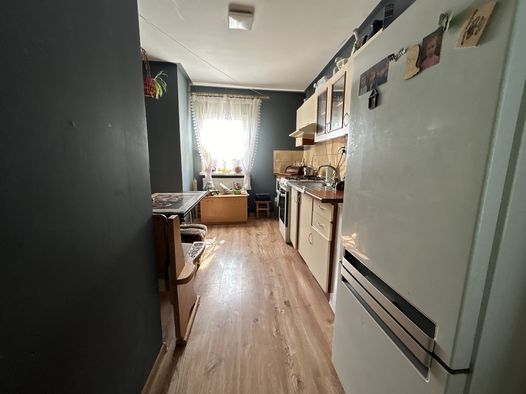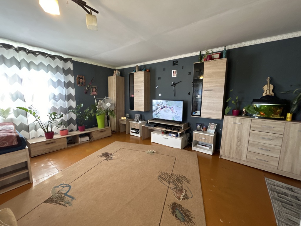 Wnętrze domu składa się z trzech pokoi: przestronnego salonu oraz dwóch przytulnych sypialni, a także funkcjonalnej kuchni i łazienki. Ogrzewanie zapewnia piec na węgiel i drewno, zlokalizowany w piwnicy. Znajdziesz tam również miejsce do składowania opału oraz bojler na ciepłą wodę.