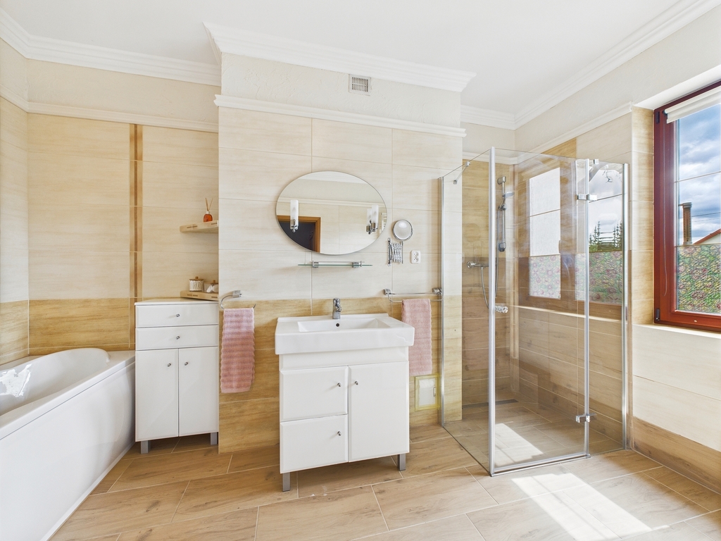 Jego wyjątkowość podnosi przystosowanie parteru dla osób niepełnosprawnych - brak progów oraz duża łazienka z łatwo dostępną kabiną prysznicową.