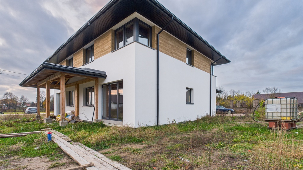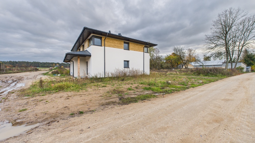 Wnętrze domu składa się z 5 pokoi, a kuchnia została zaaranżowana w formie aneksu.