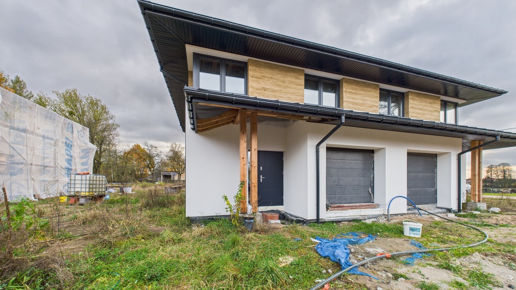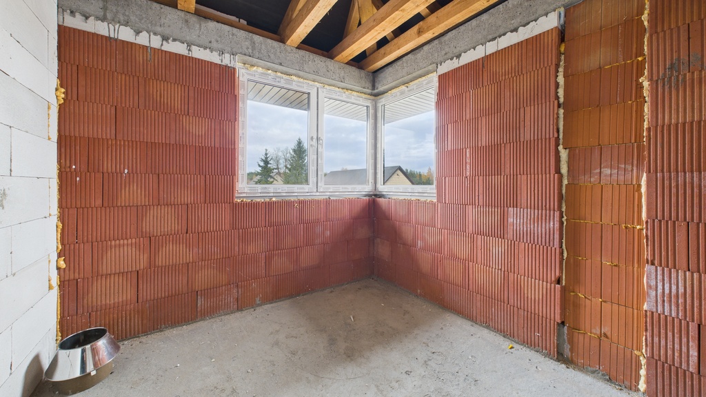 surowym zamkniętym, zbudowany z cegły kratówki, docieplony styropianem 15 cm, co gwarantuje nowoczesność i komfort.