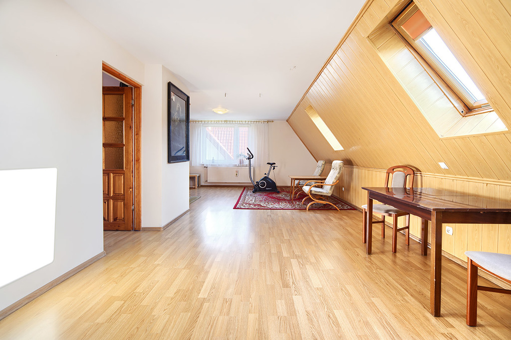 Dom: podpiwniczony, wybudowany w 1945 roku w technologii tradycyjnej (cegła), wyremontowany w 2005 roku (nowa elewacja, dach, okna, komin, instalacje).