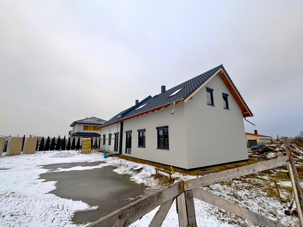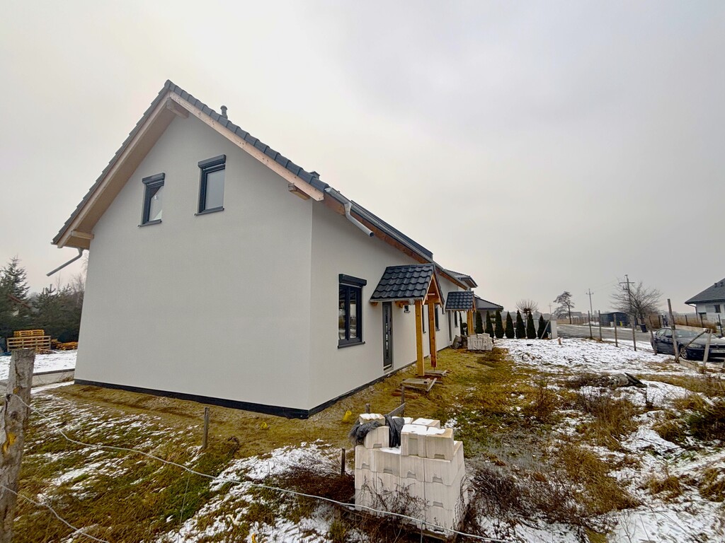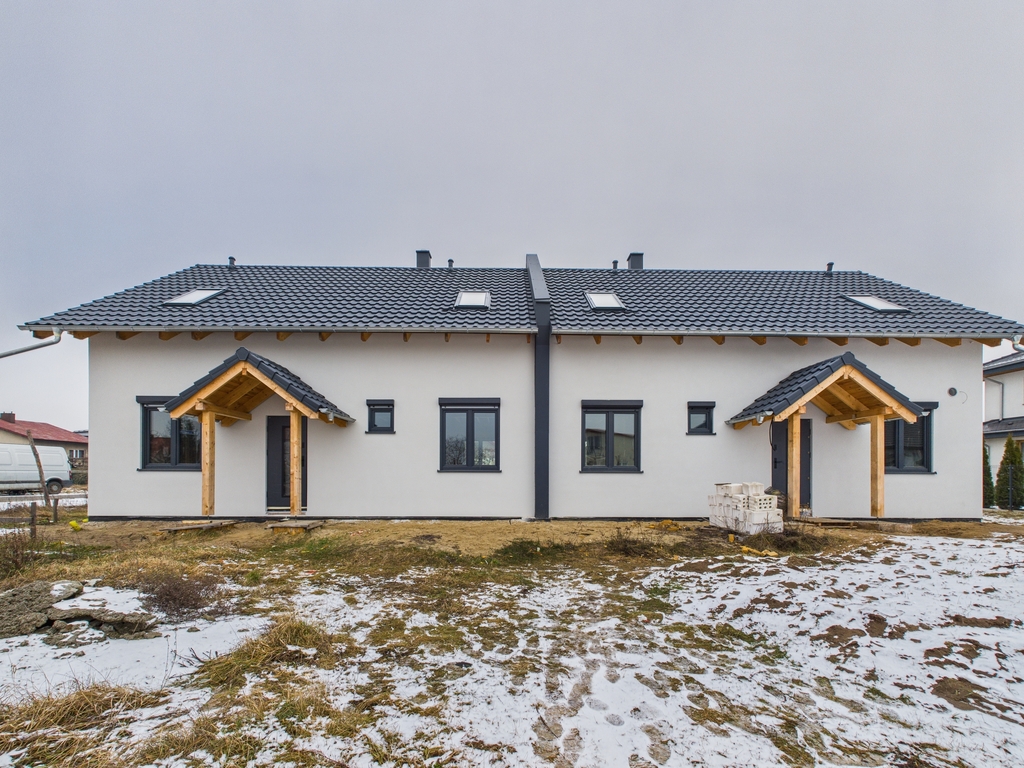Nowoczesny dom jednorodzinny w zabudowie bliźniaczej (dom modułowy) realizowany według projektu Z500 Z14 D L, o powierzchni całkowitej 139,42 m² oraz użytkowej 109,24 m², posadowiony na działce o powierzchni 552 m². Nieruchomość sprzedawana jest w stanie surowym zamkniętym.