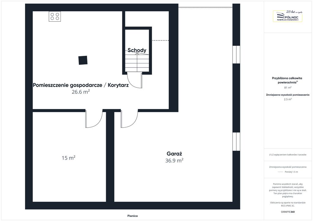 Piwnica • Pomieszczenie gospodarcze – 26,6 m.kw.