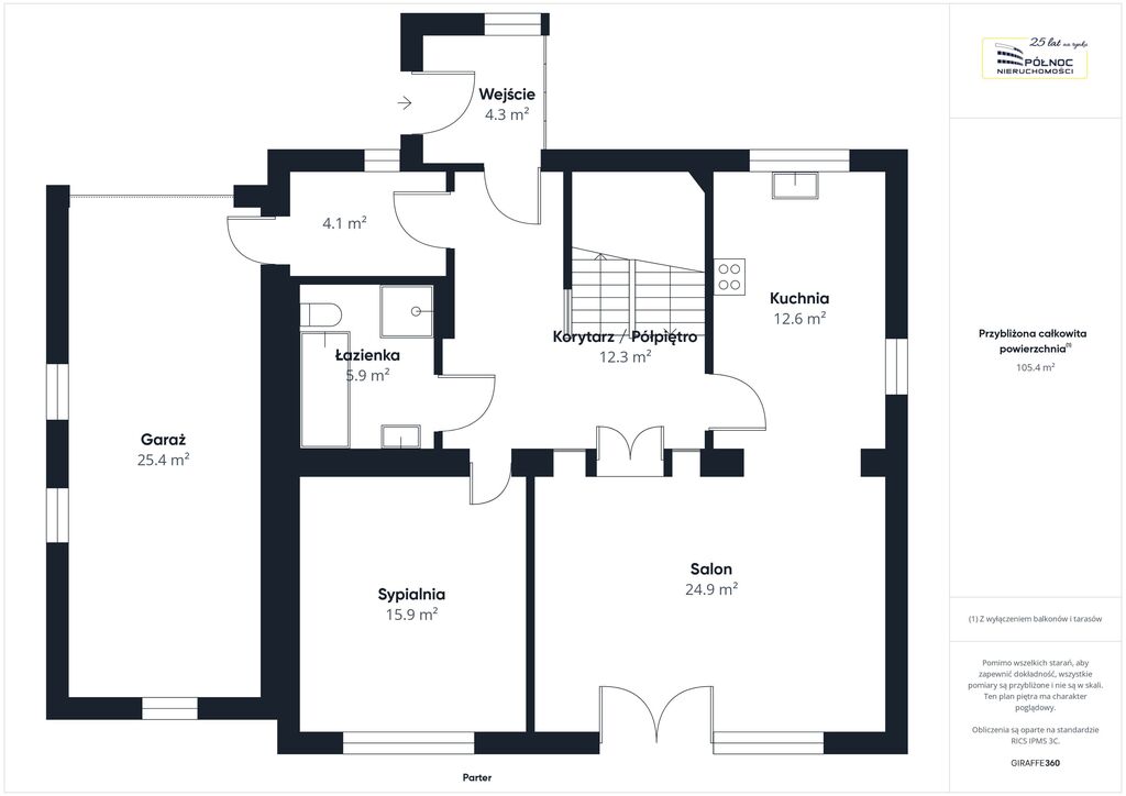 • garaż jednostanowiskowy – 25,4 m.kw