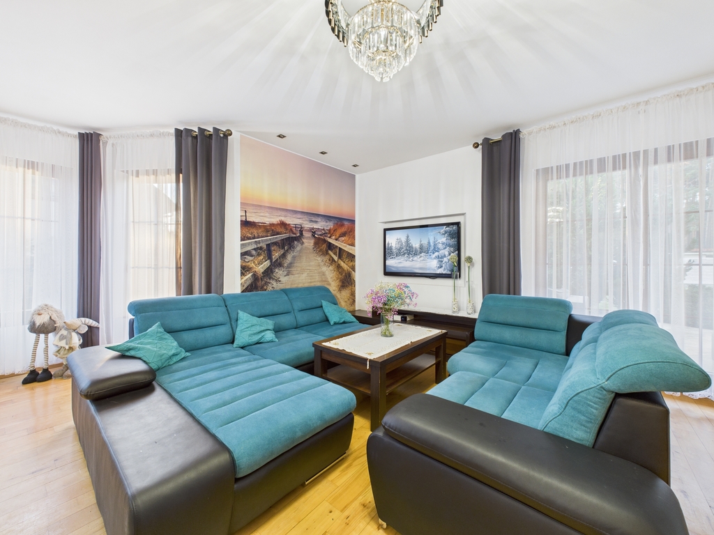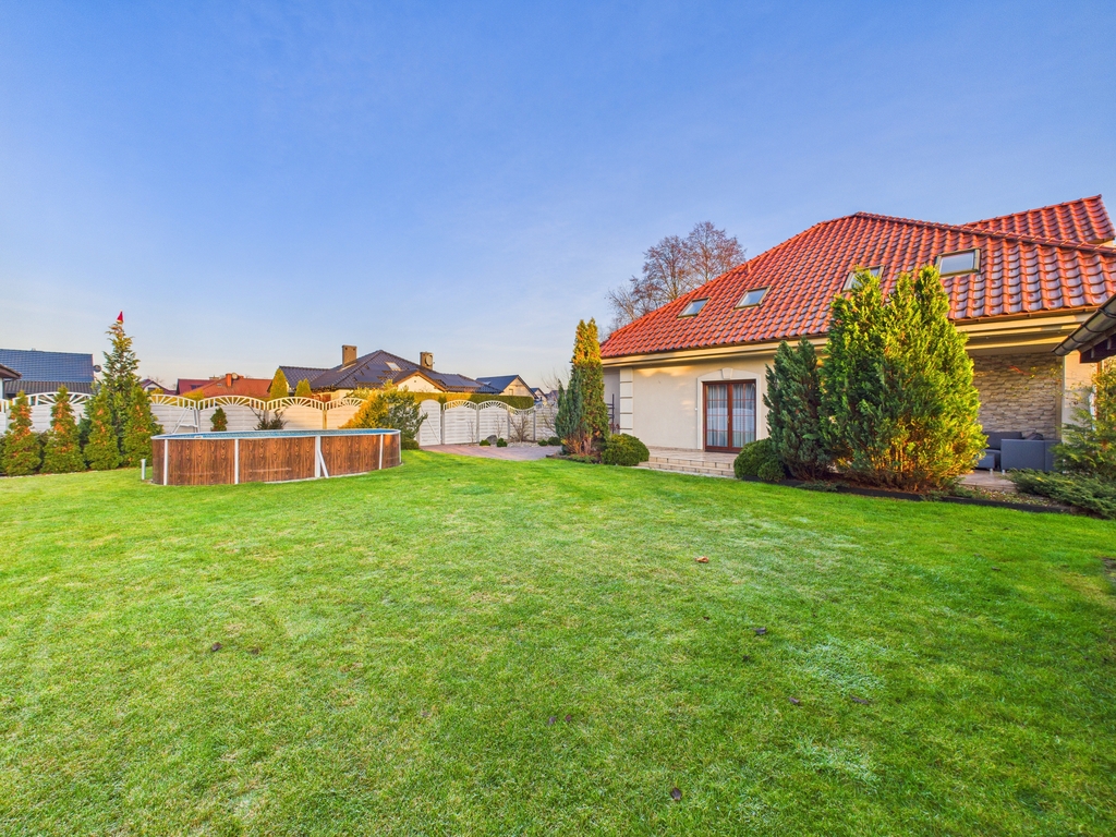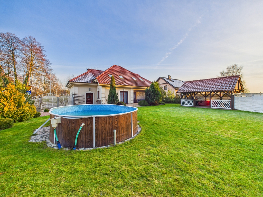 wyjątkowa nieruchomość dla osób poszukujących komfortowego domu w otoczeniu zieleni, z dużą działką, basenem i pełną infrastrukturą rekreacyjną. Połączenie nowoczesnych rozwiązań z doskonałą lokalizacją tuż przy lesie czyni tę ofertę niezwykle atrakcyjną.