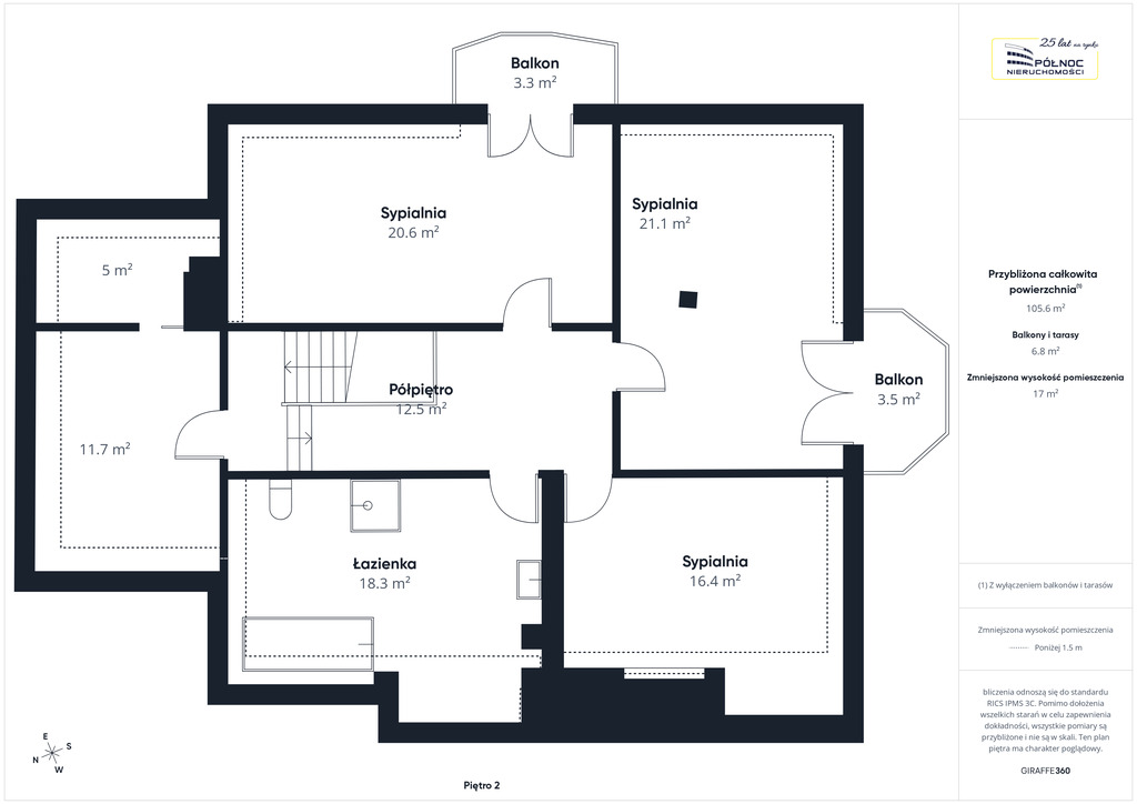 Pomimo dołożenia wszelkich starań w celu zapewnienia dokładności, wszystkie pomiary są przybliżone. Ten plan pietra ma charakter poglądowy.