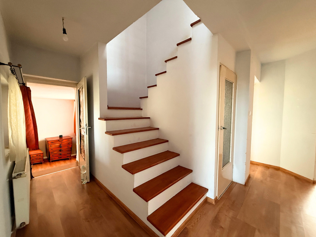 - komunikację przez wszystkie poziomy zapewniają wygodne schody, na poziomie mieszkalnym wykończone drewnem tworzącym estetyczny i ciepły charakter wnętrz.