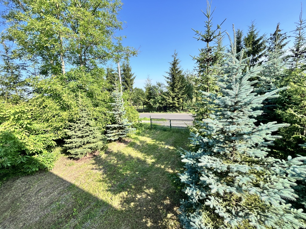 Na działce rośnie sporo drzew iglastych, które tworzą zieloną, przytulną przestrzeń. Dodatkowym atutem jest murowany budynek gospodarczy o powierzchni ok. 64 m², w bardzo dobrym stanie – posiada dwa funkcjonalne pomieszczenia.