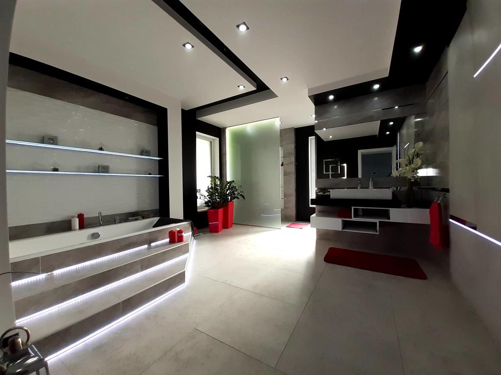W przestronnej łazience jest komfortowa wanna oraz prysznic. Wszystko wykonane z najlepszych materiałów.