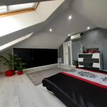 Poddasze składa się z dwóch sypialni, nowoczesnej łazienki z prysznicem, dużej garderoby z wyspą oraz pomieszczenia gospodarczego.