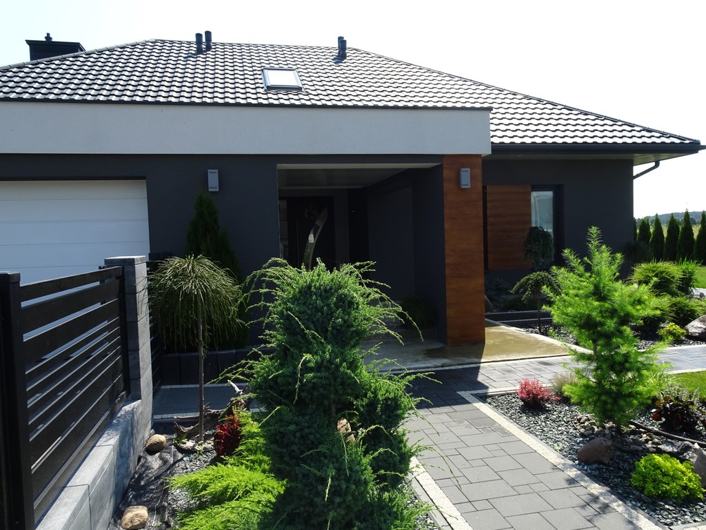Dom o powierzchni użytkowej 275 m2, o wysokim standardzie, parterowy z użytkowym poddaszem oraz tarasem.