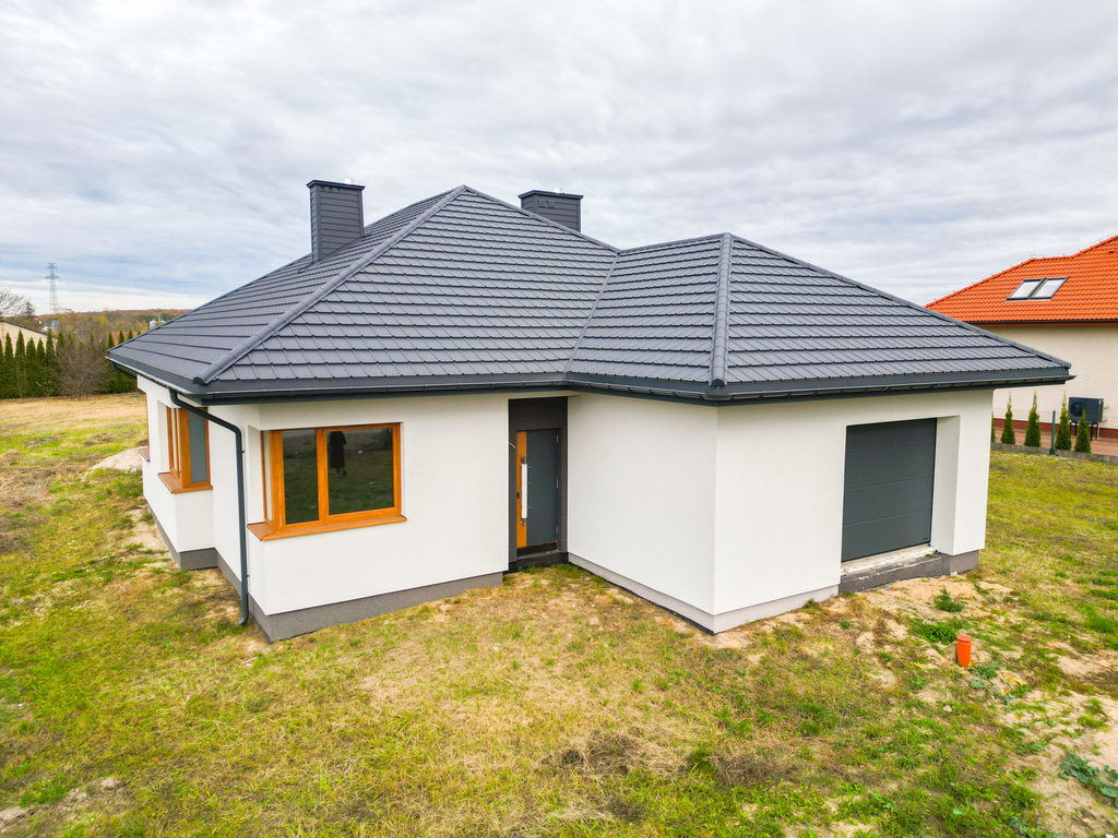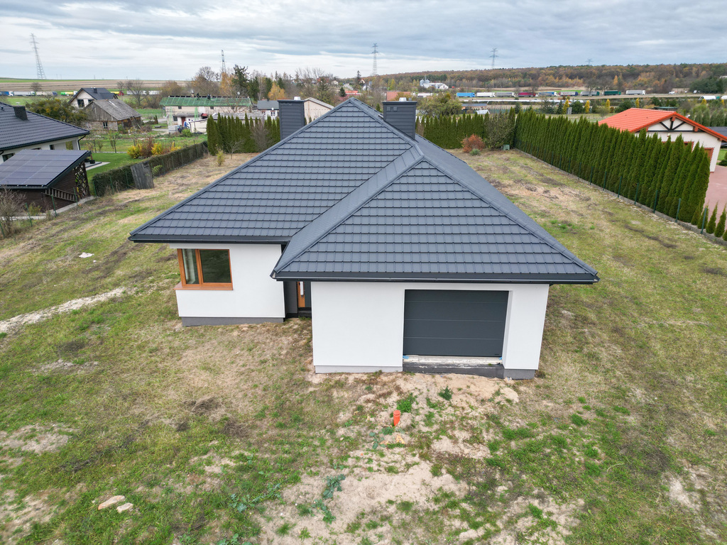 Przedstawiamy państwu nowoczesny dom parterowy zlokalizowany w Janowie. Nieruchomość w stanie deweloperskim o powierzchni 180 m2 znajduje się na 30 arowej działce otoczonej tujami, dzięki czemu zachowana jest prywatność.