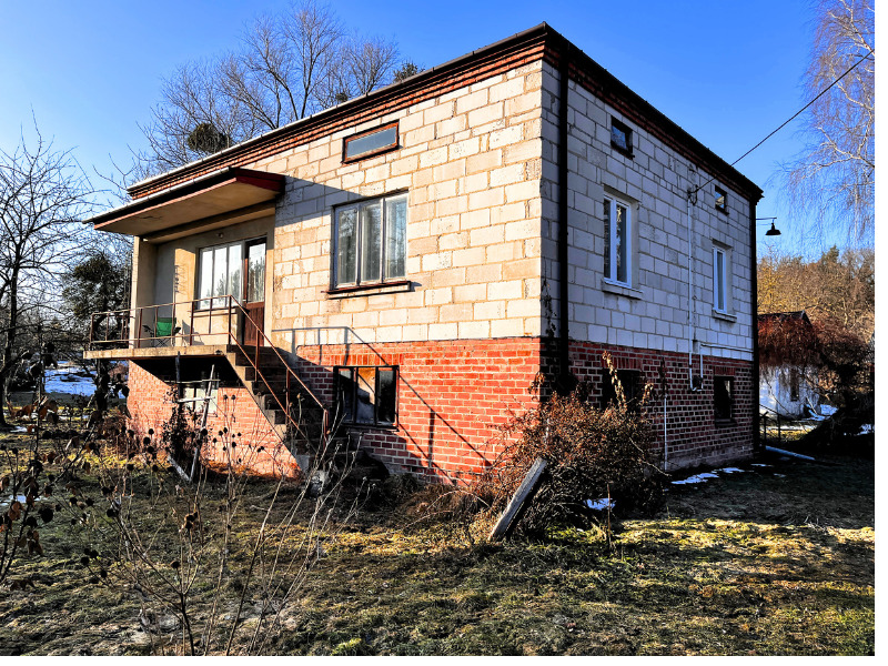 Dom wolnostojący o klasycznej bryle typu klocek, wybudowany w 1983 roku z solidnych materiałów (podmurówka z cegły, wyższe kondygnacje z 1,5 pustaka).