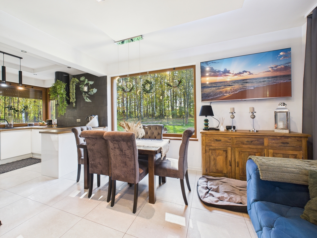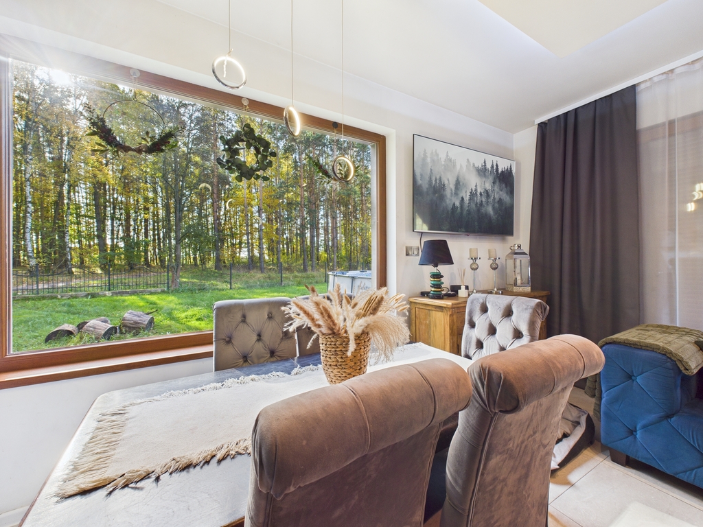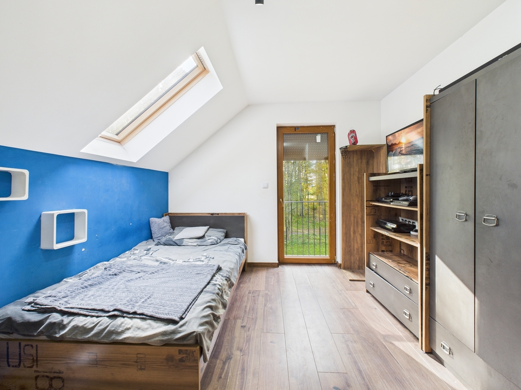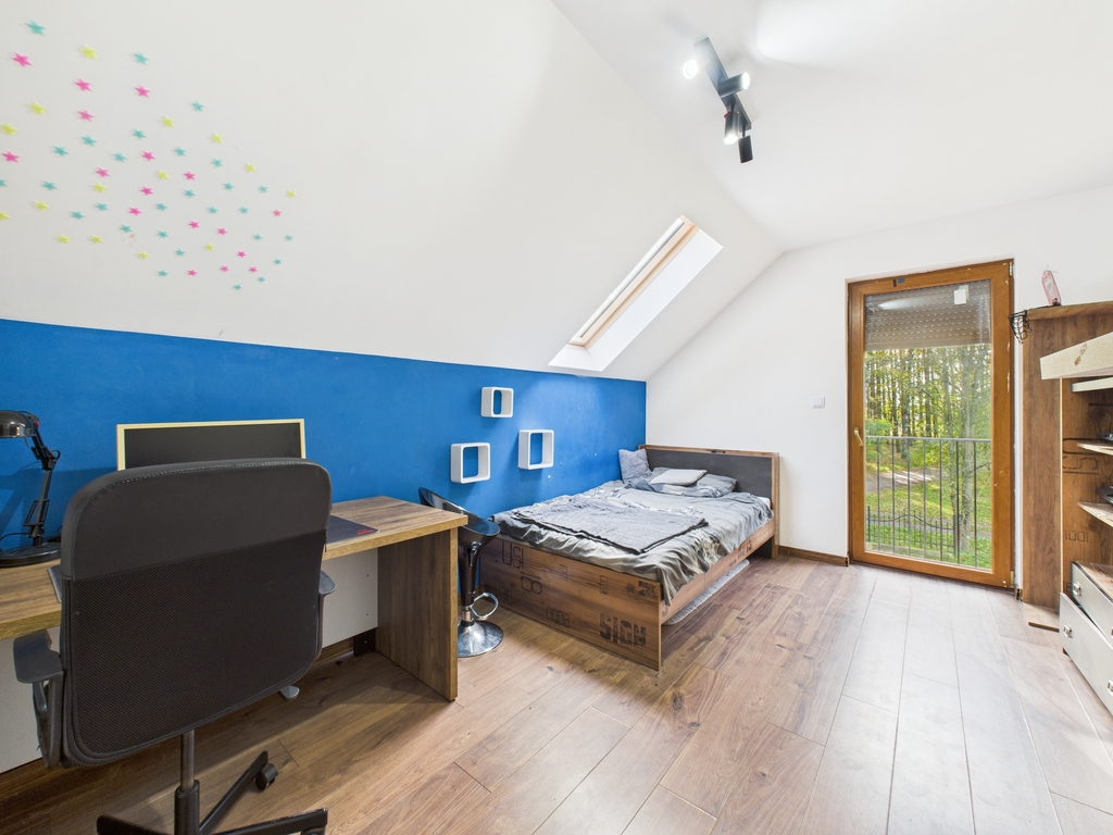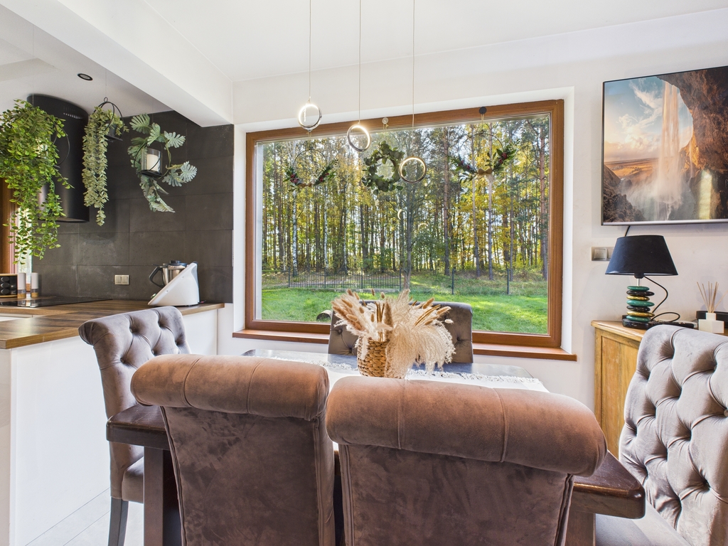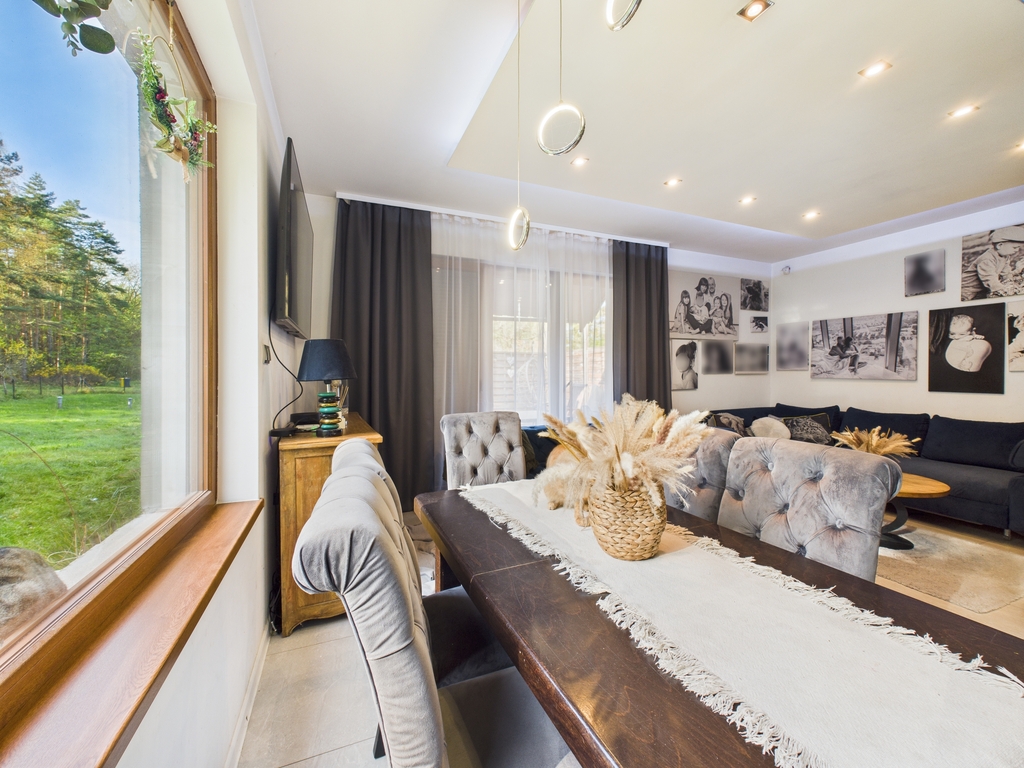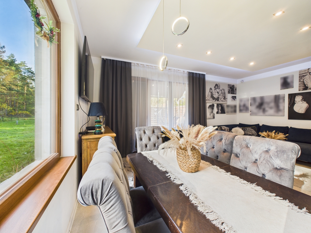 Dom wolnostojący o powierzchni użytkowej 158,47 m2, położony na działce o powierzchni 19 a, w bezpośrednim sąsiedztwie lasu, spokojna, a zarazem dobrze skomunikowana lokalizacja.