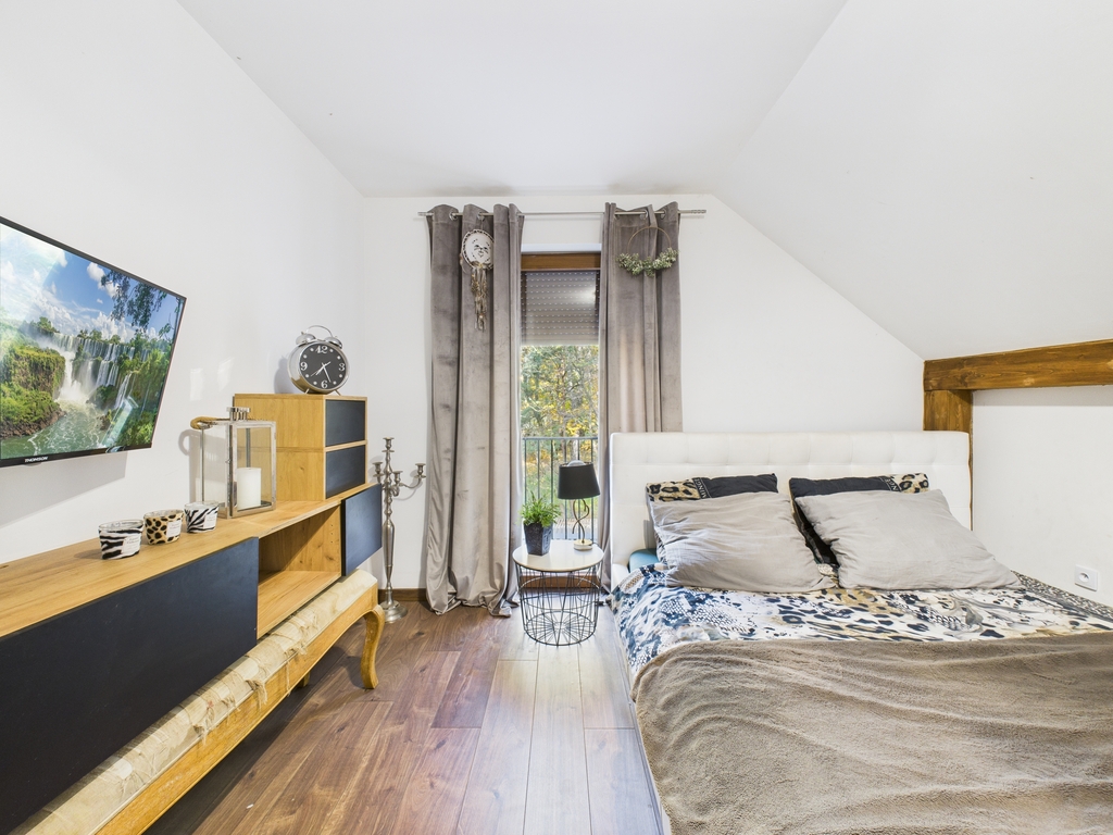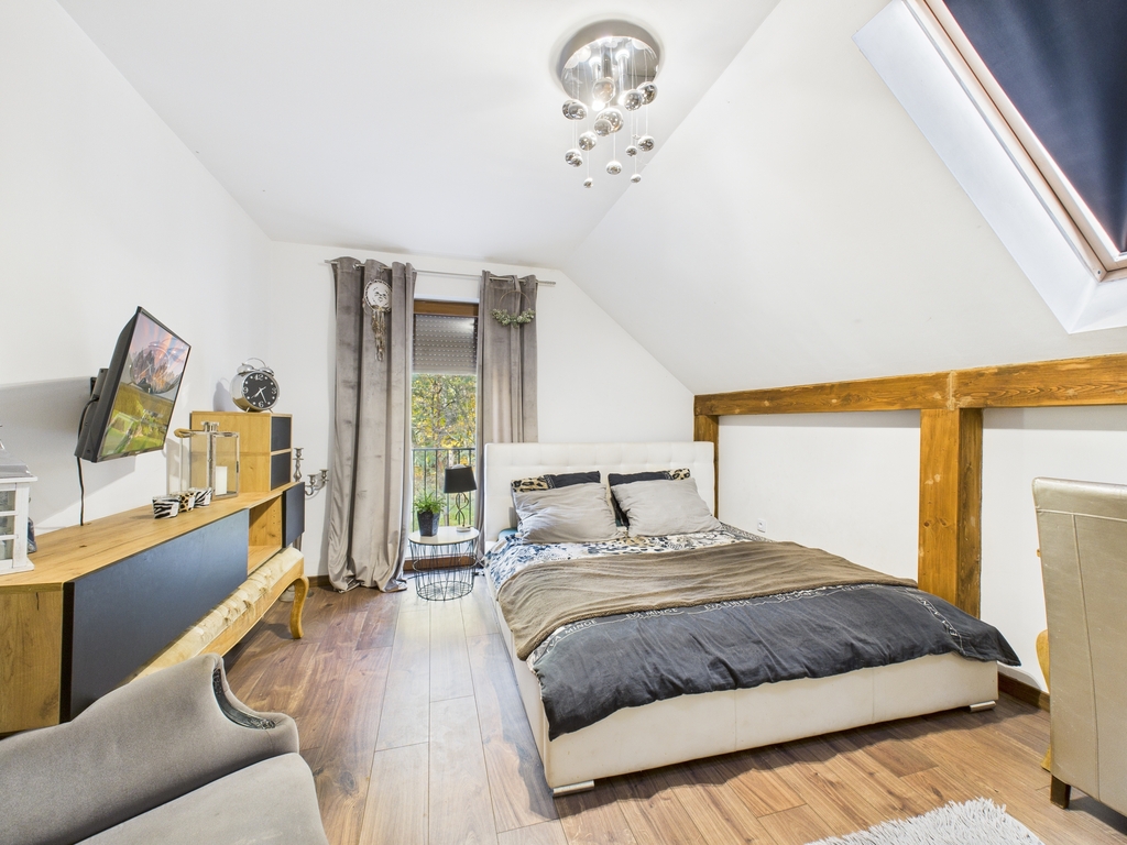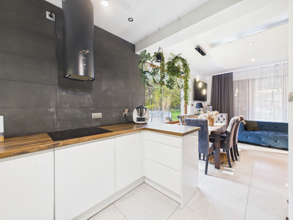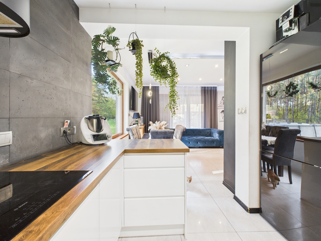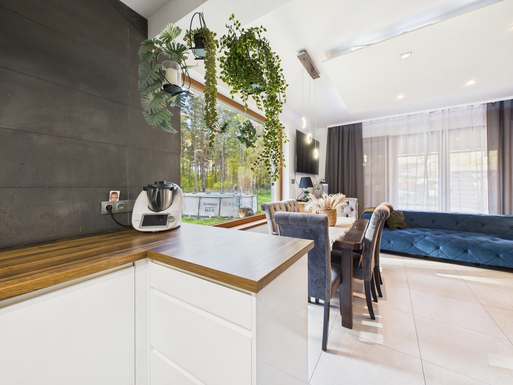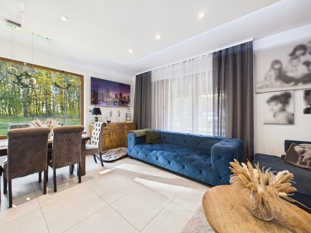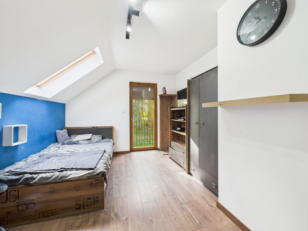Dom wolnostojący o powierzchni użytkowej 158,47 m2, położony na działce o powierzchni 19 a, w bezpośrednim sąsiedztwie lasu, spokojna, a zarazem dobrze skomunikowana lokalizacja.