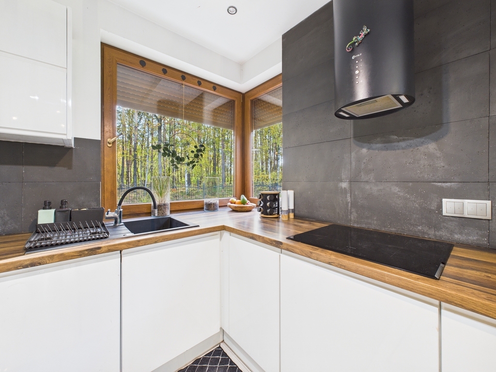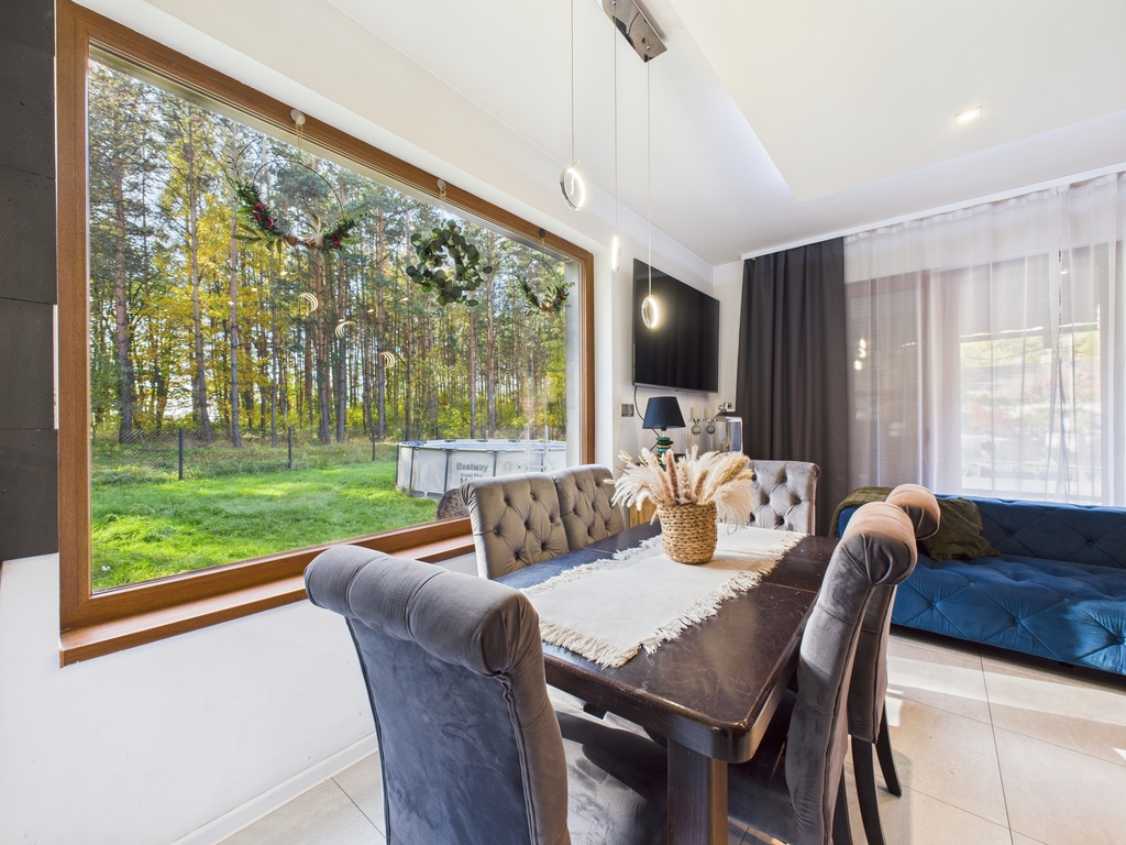 Okna wychodzą z domu na wszystkie strony świata, z salonu jest dodatkowe wyjście na taras i ogród. Zewnętrzne rolety antywłamaniowe we wszystkich oknach.