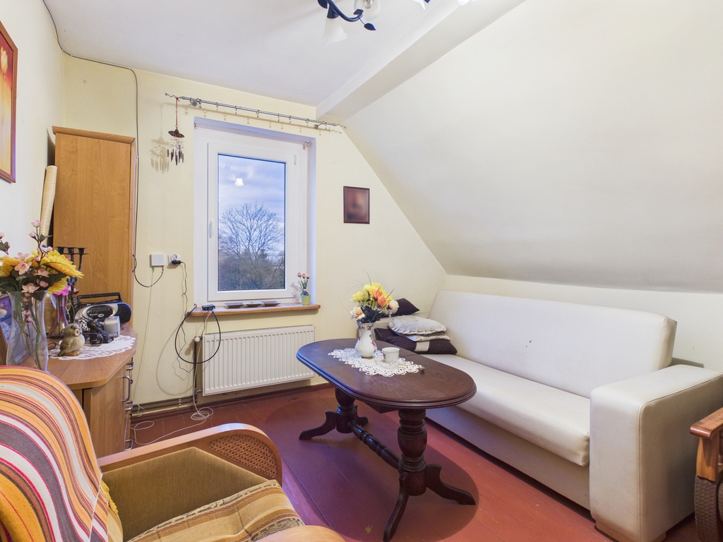 Dom o powierzchni użytkowej około 90 m2 usytuowany jest na działce o powierzchni 1471 m2.