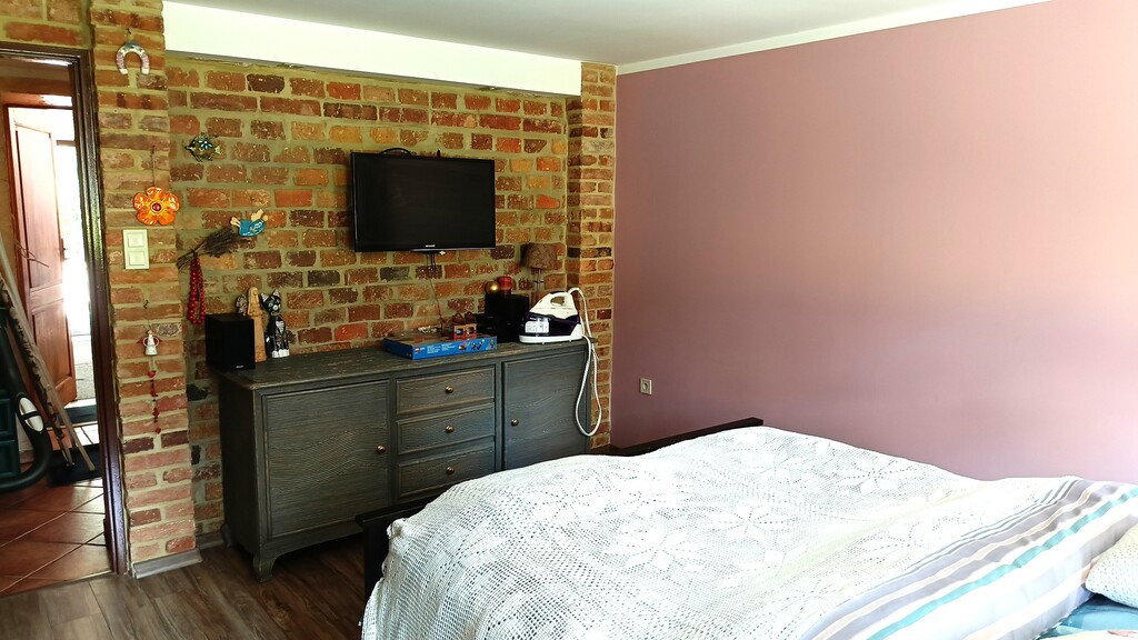 - Na ścianach gładzie, na podłogach w pokojach panele, w pozostałych pomieszczeniach płytki.