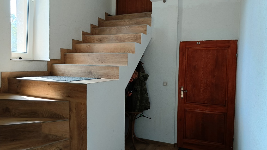Na półpiętrze usytuowana jest pralnia do mieszkania na piętrze.