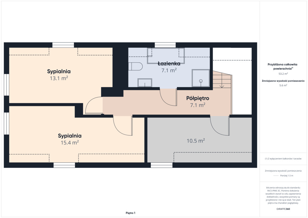 Dla dociekliwych - rzuty z podziałem pomieszczeń oraz wirtualny spacer 360° znajdziesz w galerii zdjęć – ułatwiają szybkie zapoznanie się z rozkładem i skalą wnętrz.